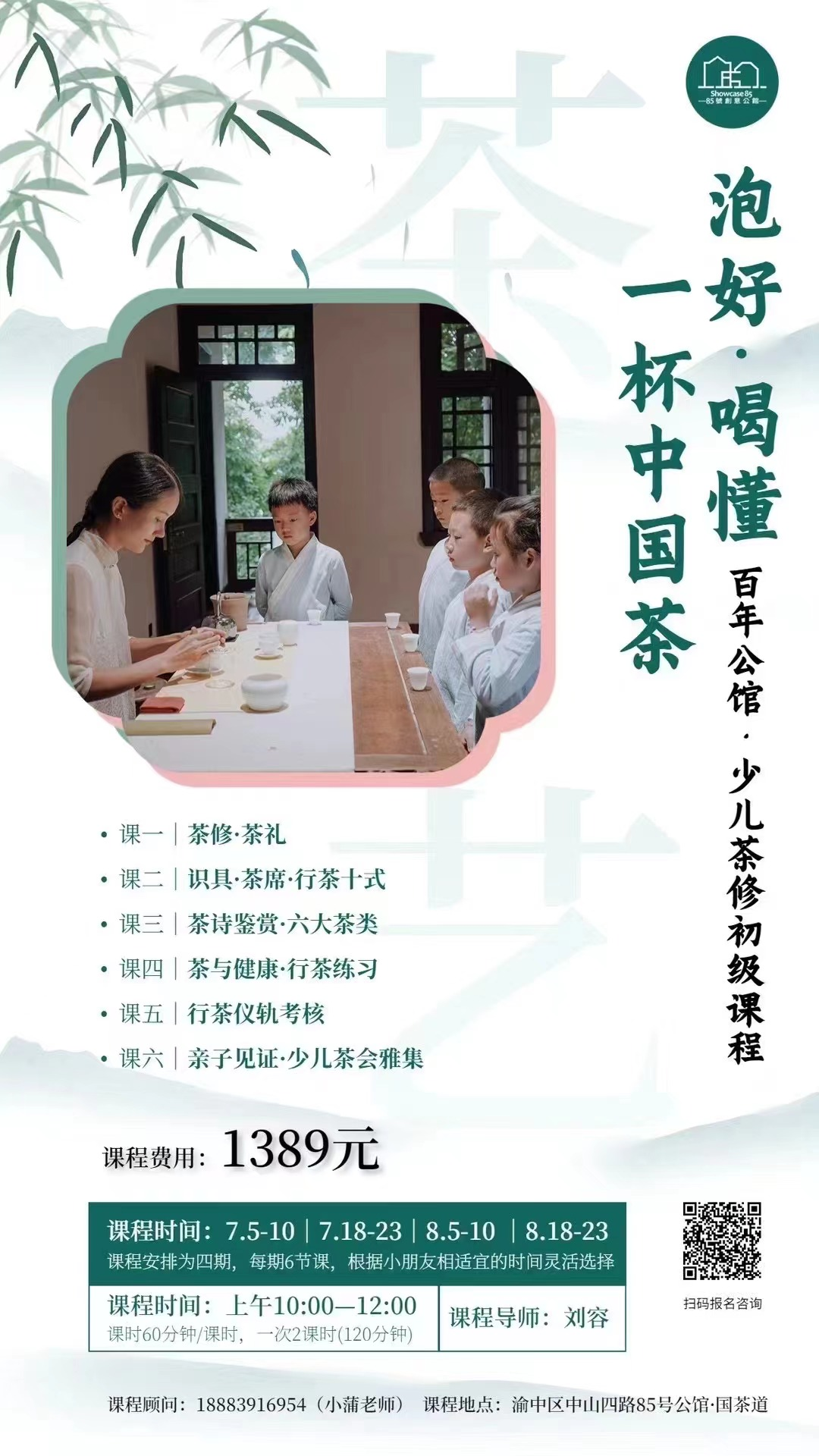 即日起,85号创意公馆・国茶道少儿茶修课正式开课,快来国茶道,体验中国茶滋养身心之妙吧~