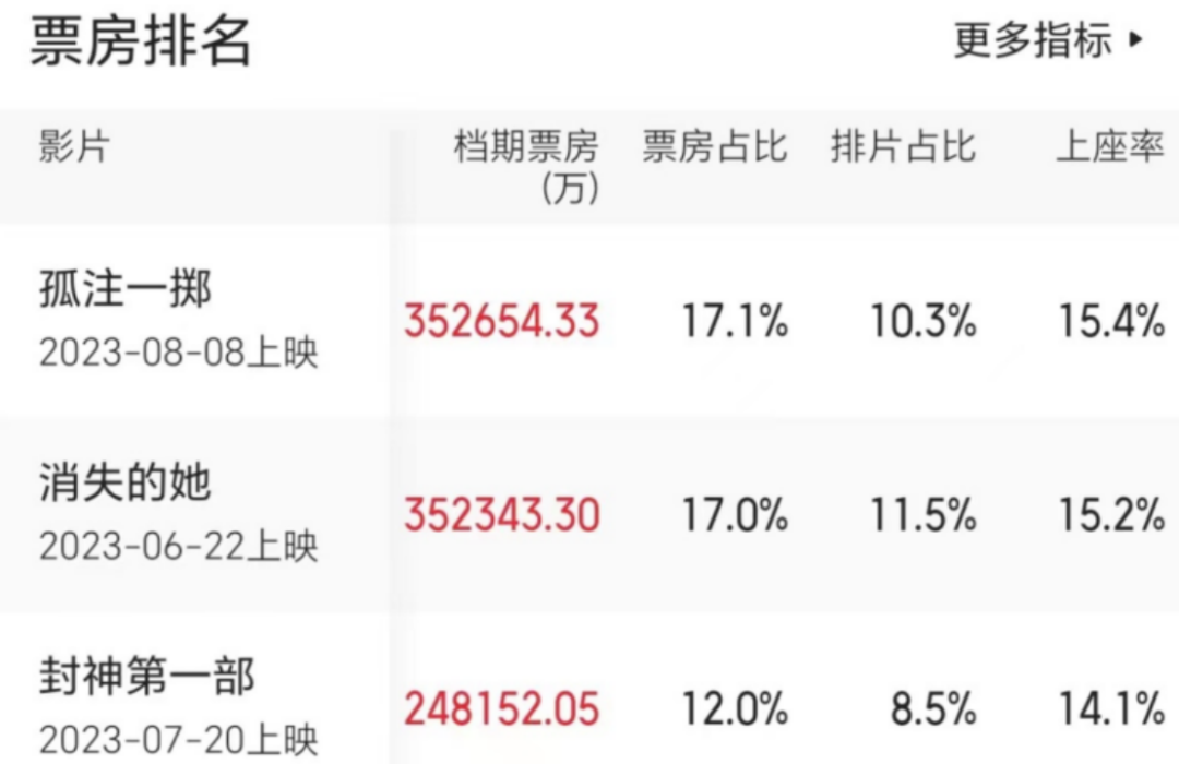 上映之初,《封神》的票房也的确如大家所料:首周4天票房不足4亿,预测总票房不足12亿,出品方北京文化一度跌停。