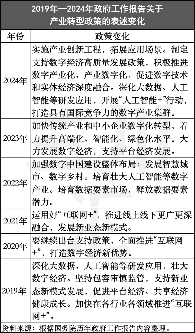 九年后的今天,新一届政府在首次政府工作报告中重磅提出,将制定支持数字经济高质量发展政策,积极推进数字产业化、产业数字化,促进数字技术和实体经济深度融合。深化大数据、人工智能等研发应用,开展“人工智能+”行动,打造具有国际竞争力的数字产业集群。这一行动的提出,标志着人工智能应用已经进入国家政策的顶层设计层面。据此,支持数字经济高质量发展政策预计将在年内出台。